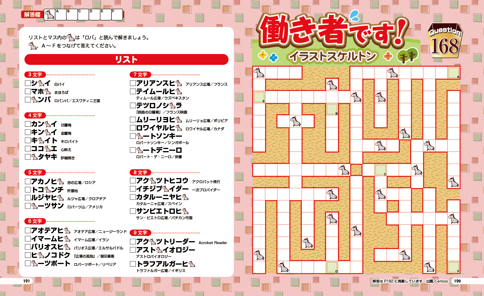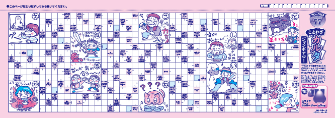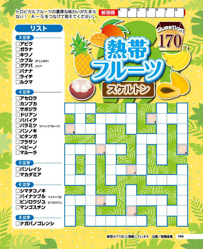 問題のサイズが大きくなるとマスの数もキーワードの数も格段に多くなるため、難易度がグッと上がります。手応えのある難問に挑戦したい方にオススメの、超特大ジャンボアロークロス&スケルトンを計4問収録しました。ぜひチャレンジしてみてください。