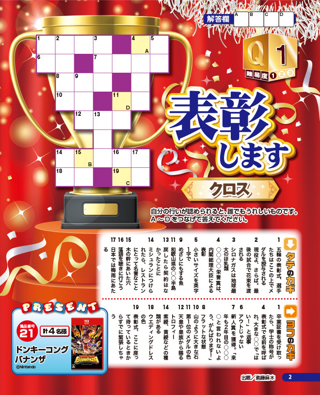 ●日頃のがんばりが評価されました!「表彰」をテーマにしたクロスワードです。