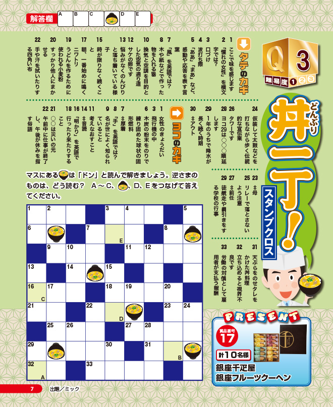●お腹いっぱい食べたい!「丼」をテーマにしたクロスワードです。