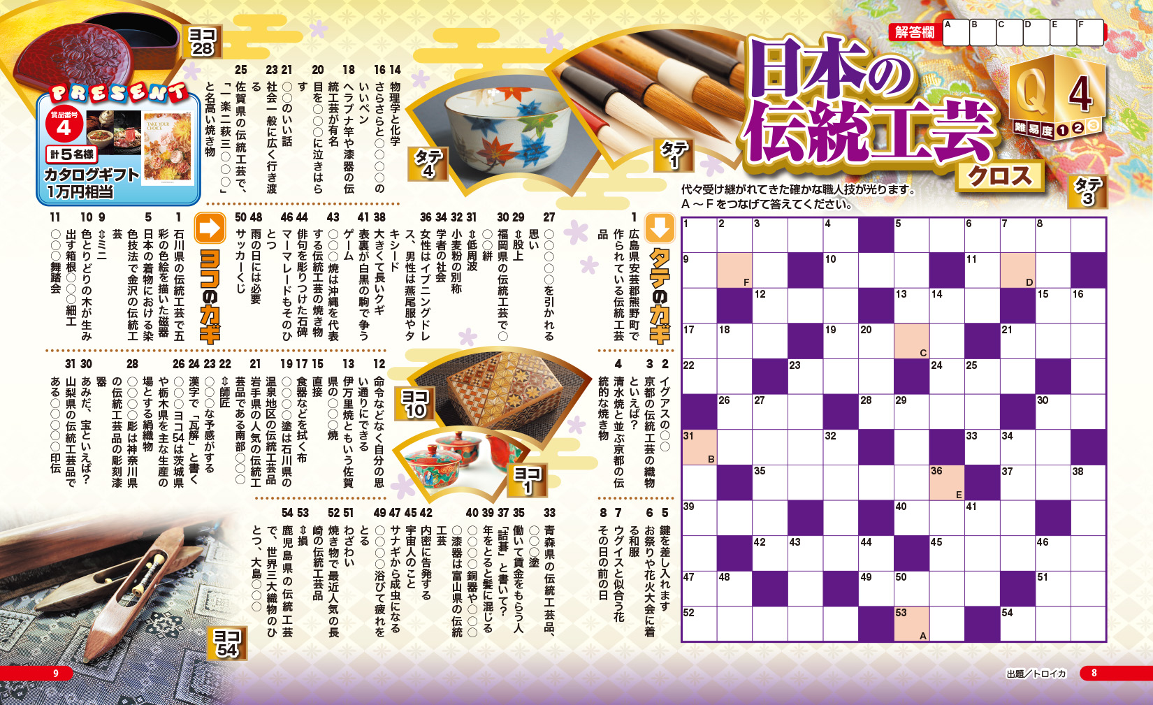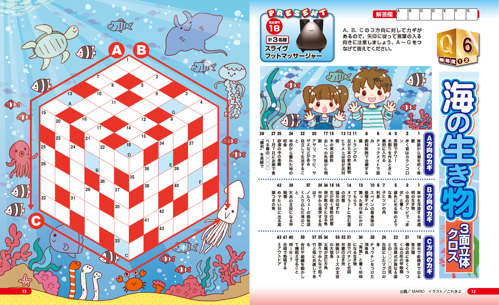 「クロスワード」とひと言で言っても、実はたくさんの種類があるんです。漢字とカギで言葉ひらめく「漢字MIXクロス」、リズミカルな五・七・五のヒント「川柳クロス」、楽しさ飛び出す立体感「3面立体クロス」など。ユニークで魅力的なクロスワードの世界を本誌でお楽しみください。