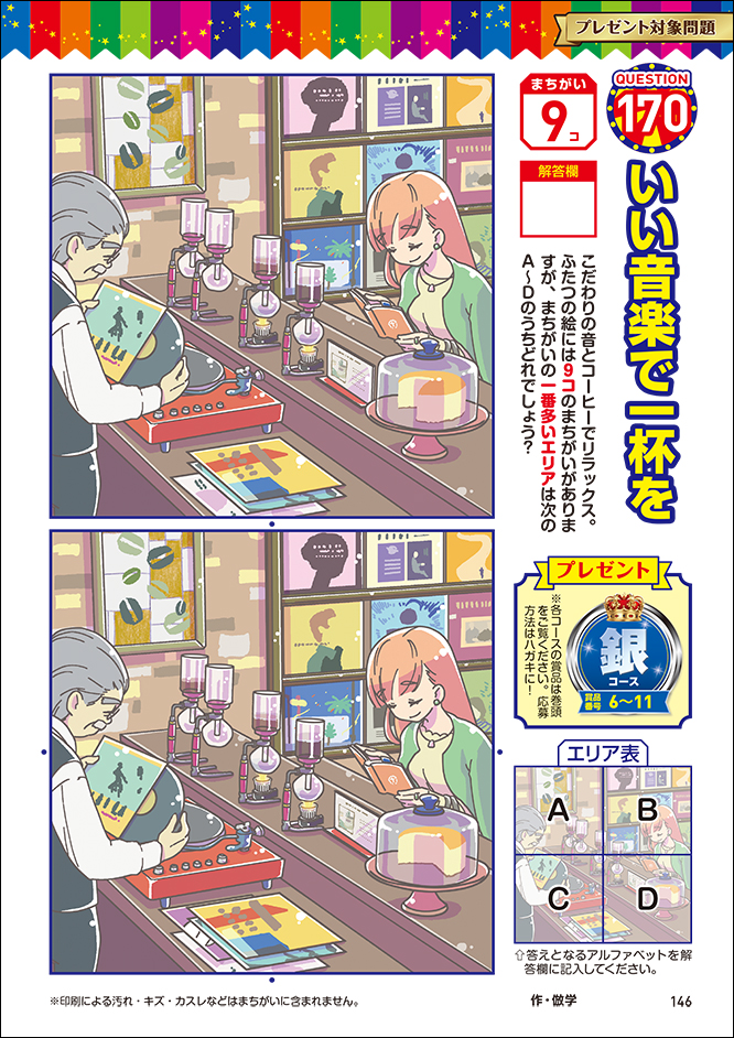イラストの大きさも、まちがい個数もスペシャル! 4ページで1問の「スーパージャンボ問題」に挑戦しましょう。机に大きく広げて、みんなで悩みながらさがせばワイワイと会話も弾むかも⁉
