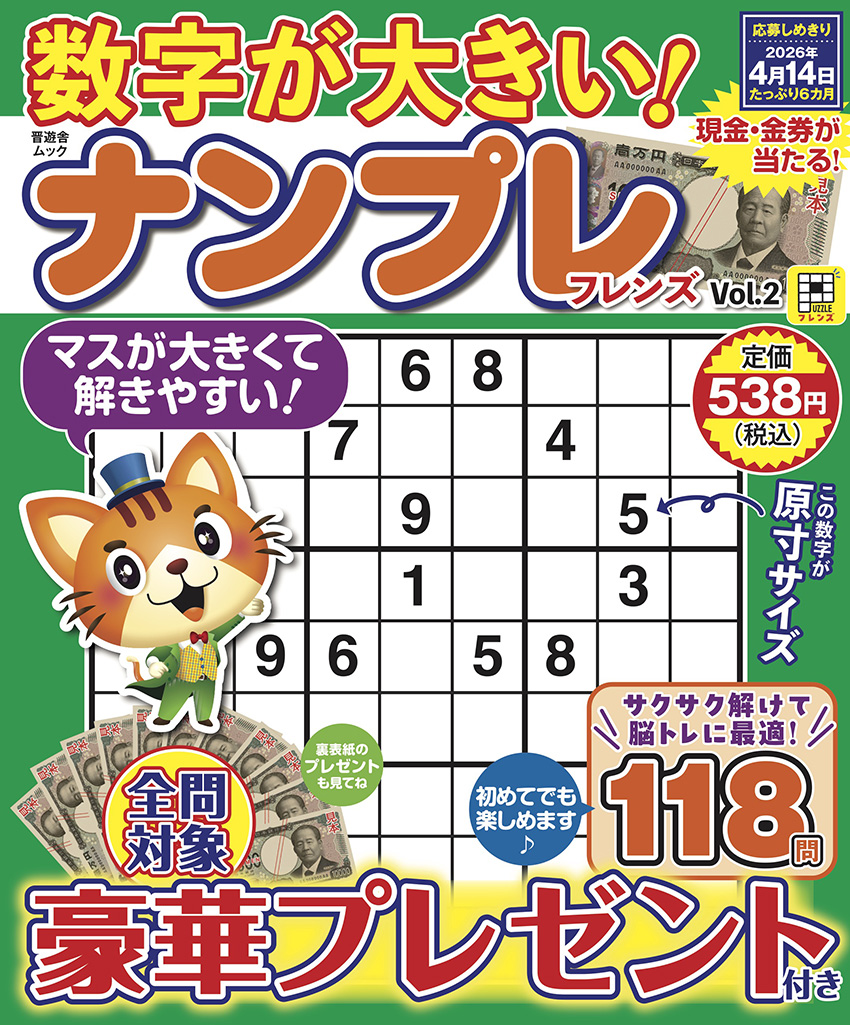 余分なものを一切排除した、シンプルなレイアウトが本誌の特徴です。仮置きする数字などのメモがたくさん記入できるよう、書きやすさと解きやすさにこだわりました。