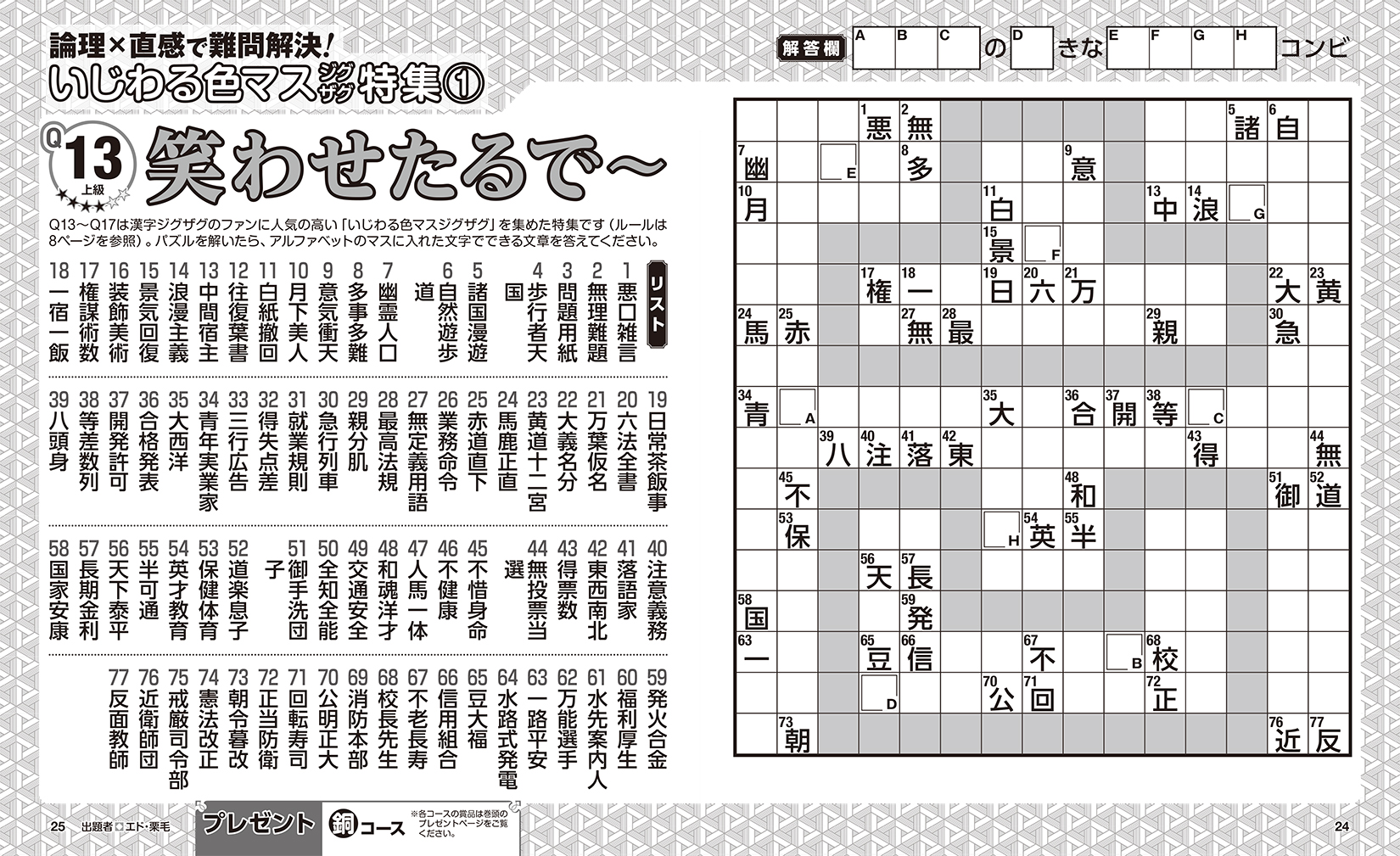良問・難問・超難問・超特大の問題を楽しめる漢字ジグザグ誌