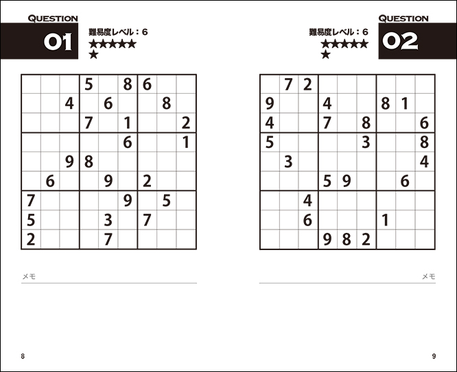 余分なものを一切排除した、シンプルなレイアウトが本誌の特徴です。仮置きする数字などのメモがたくさん記入できるよう、書きやすさと解きやすさにこだわりました。