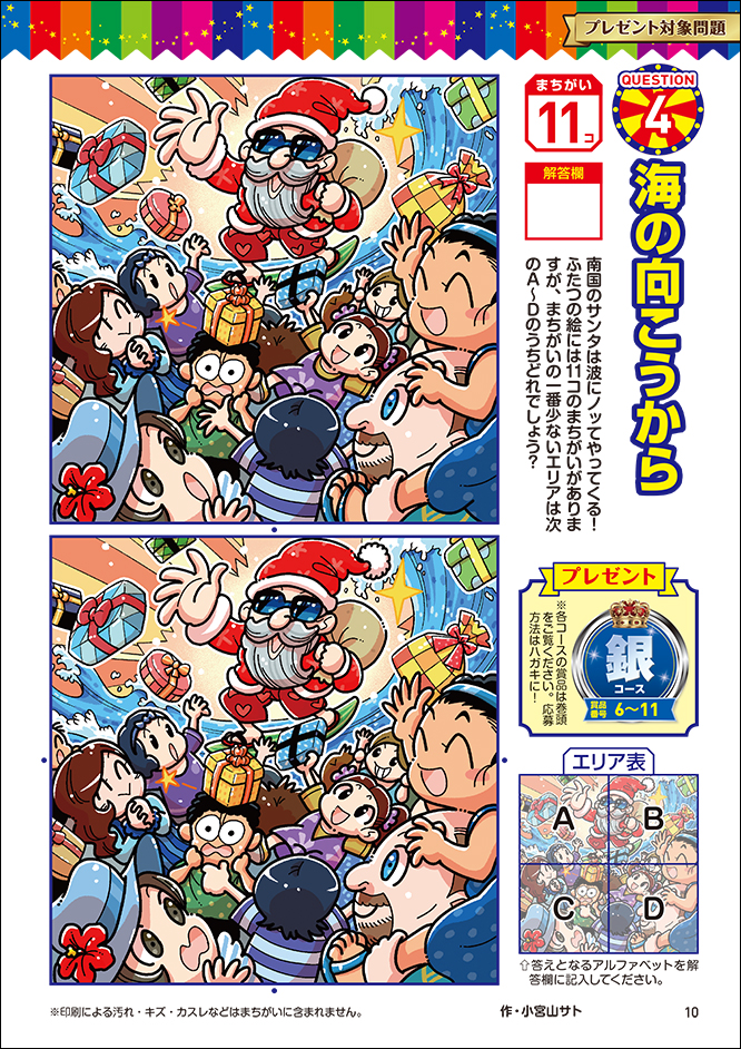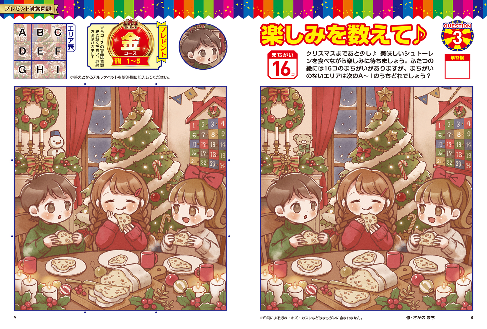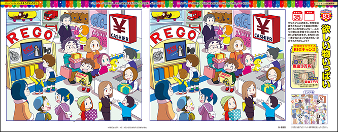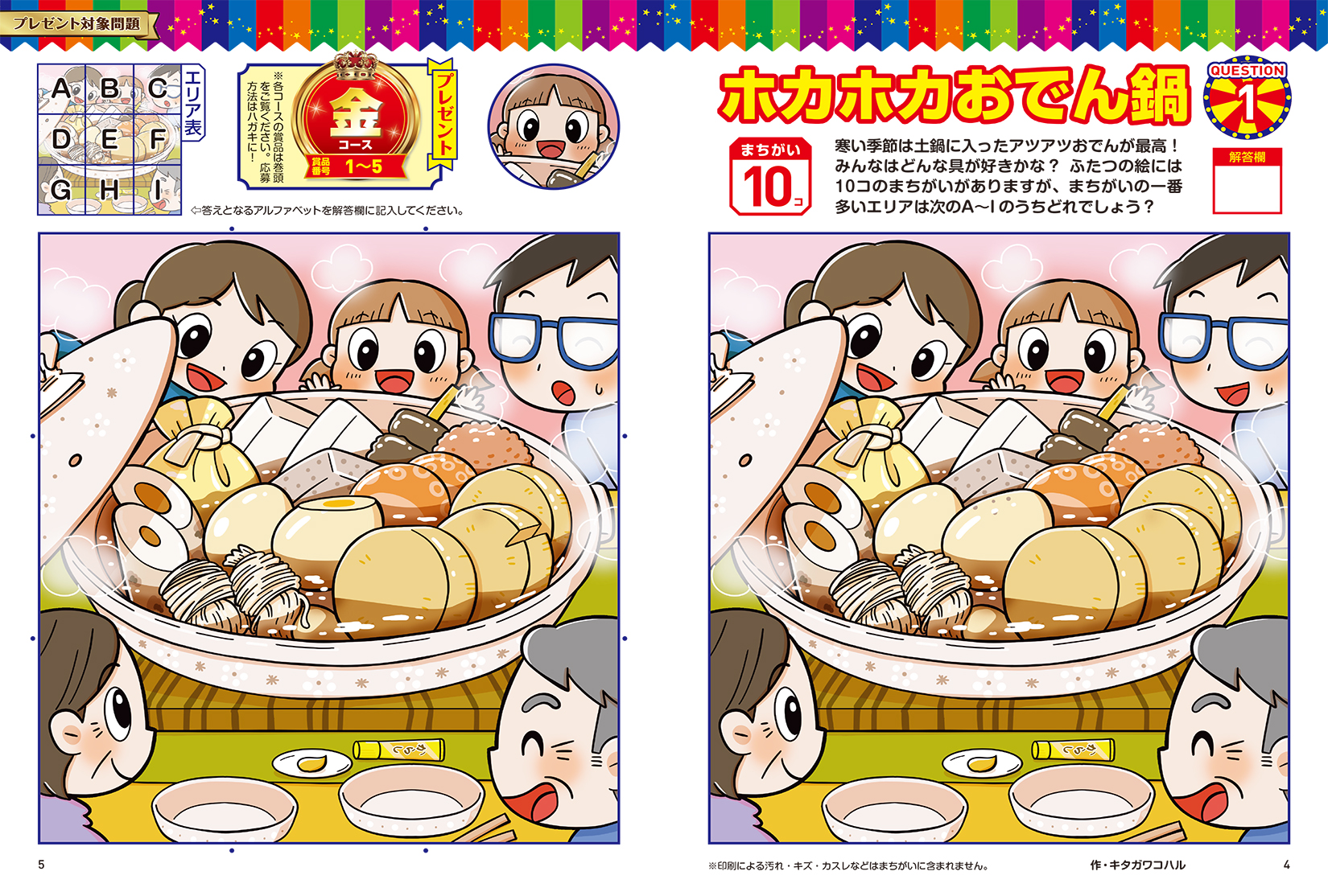 イラストの大きさも、まちがい個数もスペシャル! 4ページで1問の「スーパージャンボ問題」に挑戦しましょう。机に大きく広げて、みんなで悩みながらさがせばワイワイと会話も弾むかも⁉ 今号からはカラーページが増えて、より一層手強く、楽しくなりました♪