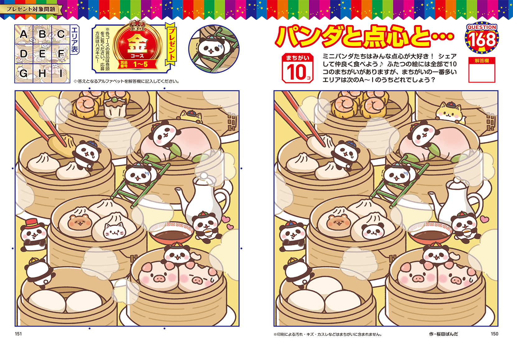 ●イラストはタテ長・ヨコ長の長方形、ヨコがすごく長いパノラマワイドなど多様なサイズを用意しています。タッチやアングルが変わったり、イラスト内にあるまちがいの数、対象エリアの設定も違うなど、解き方が豊富なのも本誌の大きな特徴です。なかにはひと筋縄ではいかない、ちょっと「イジワル」な問題も……。