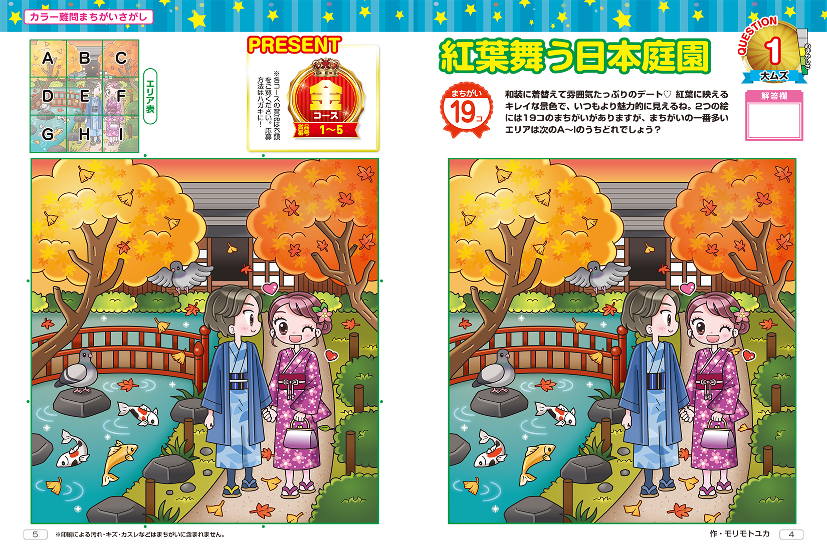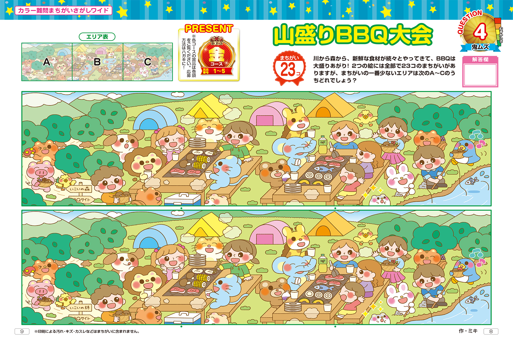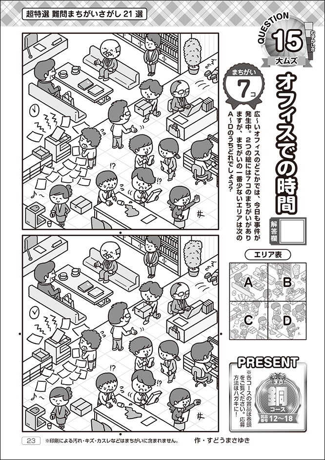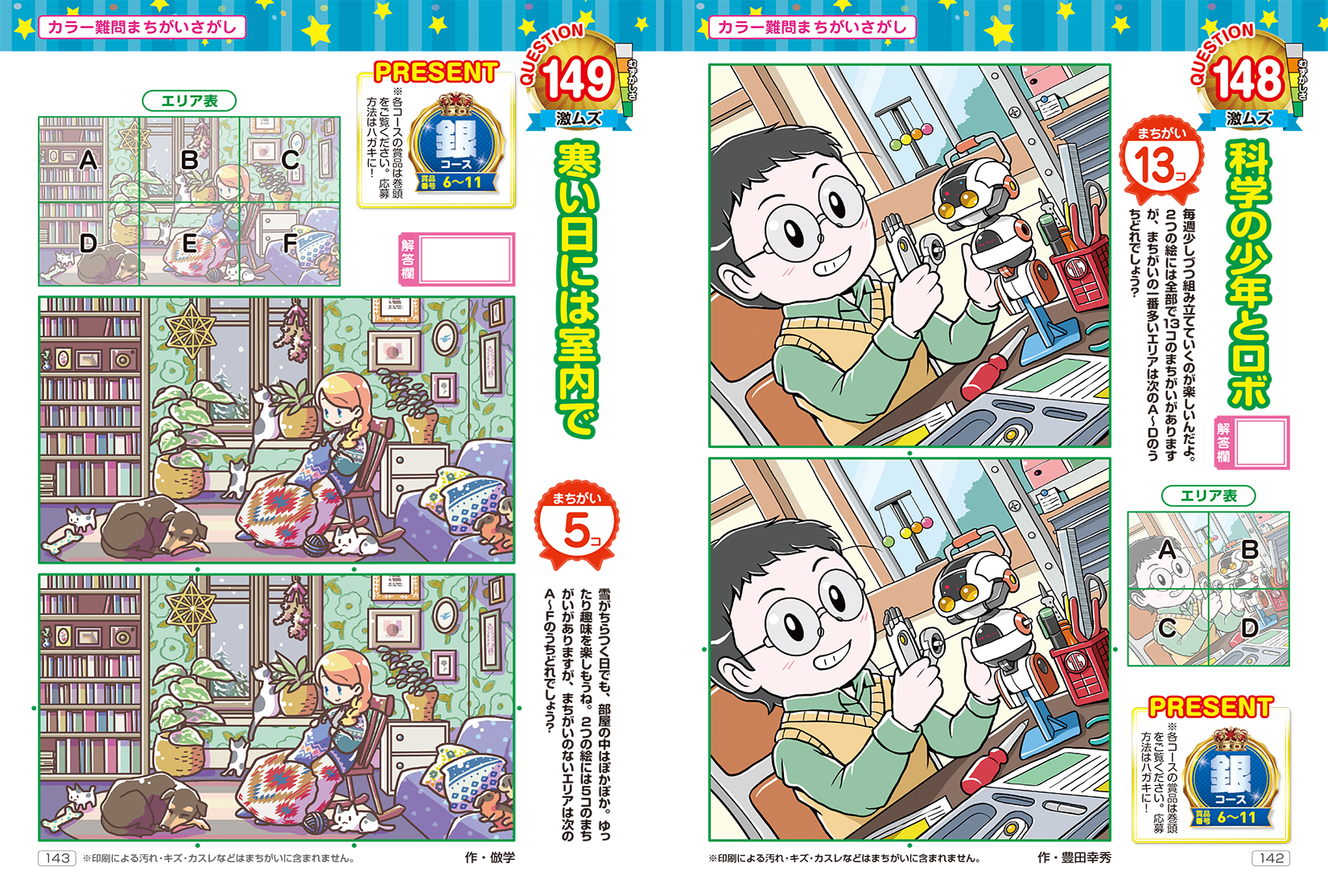 ●巻末には本当に難しい問題を集めた「最後の関門 超絶難問7(セブン)」を掲載。全部のまちがいを見つけるのはとても時間がかかりますが、じっくりと取り組んでみて下さい。目指せ全問制覇!