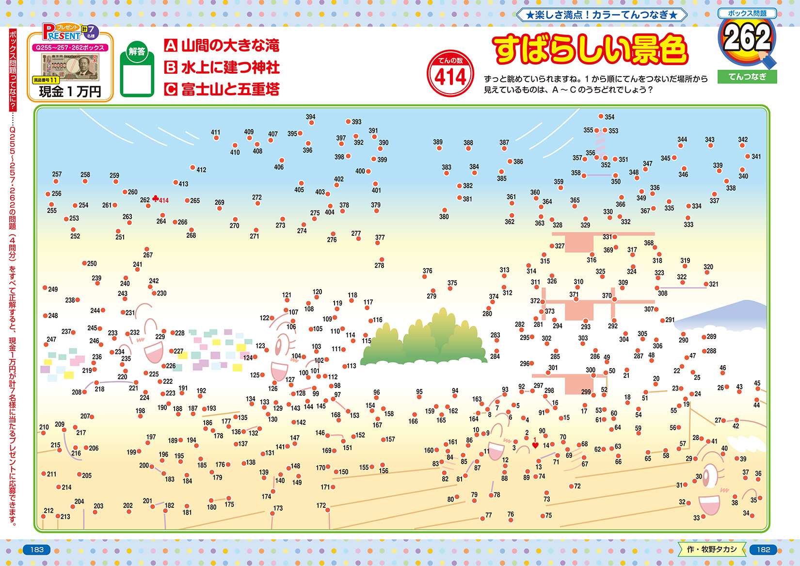 ●今号ではなんと、てんの数1000を超える超大作が登場! 大迫力の「超特大!スーパーワイドてんつなぎ」を2問収録しています。ケタ違いのてんの数と解き味を、ぜひ体験してみてください。