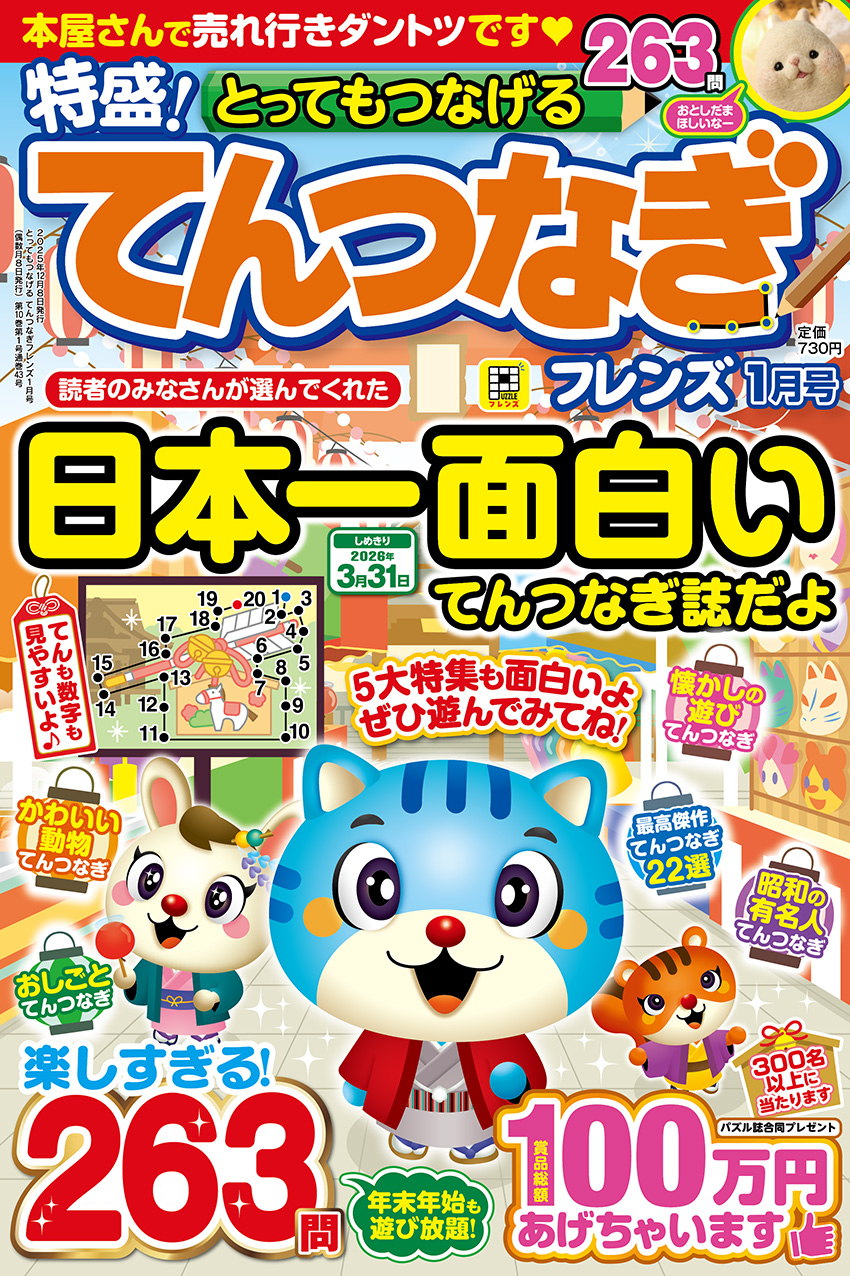 てんをつなぐと現れるのは愛らしい動物や、やってみたい夢のチャレンジ、今年の大河ドラマで話題の「江戸時代」がテーマの特集など、バラエティ豊かな傑作ばかりです。てんをつなぐだけで楽しいイラストが現れますので、ぜひ挑戦してみてください。