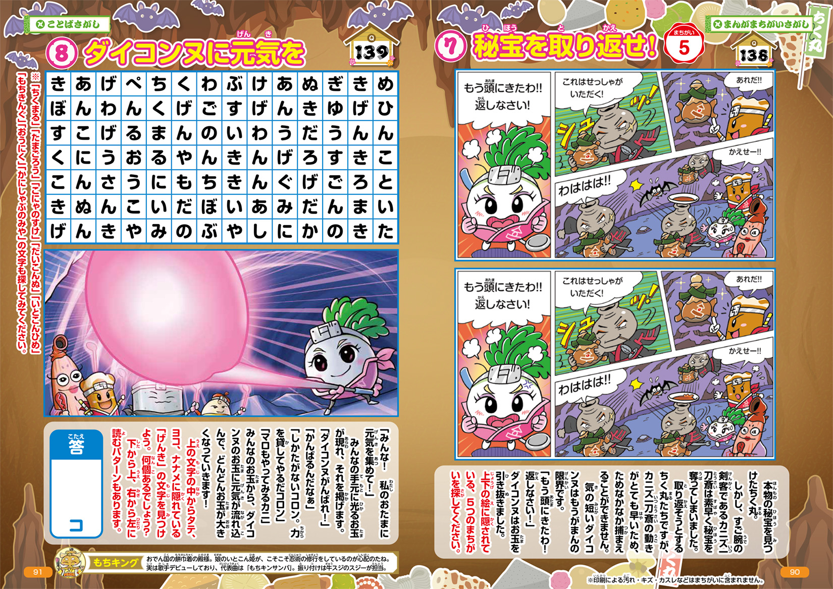 迷路や探し絵、まんがまちがいさがしなどのパズルを解いて、